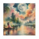 Romantic Moonlight Watercolor Night Scene Wood Wall Art
