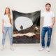 A dreamy abstract blanket featuring a couple standing together on layered marble-textured hills under a giant glowing moon. The design combines deep earthy tones, rich marbled patterns, and golden highlights to create a warm, romantic atmosphere. The oversized moon contrasts against the dark sky, symbolizing love, serenity, and timeless connection. Perfect for those who adore celestial-inspired elegance, this piece blends modern abstract style with an intimate, heartfelt touch.