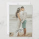 Simple elegant beach tropical summer destination minimalist modern photo overlay wedding invitation with whimsical names script and wedding logo monogram.