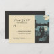 romantic wedding RSVP cards with bride and groom, trees, forest, lake, moon and string lights.