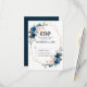 Romantic Navy blue Blush Pink Floral Geometric RSVP Card