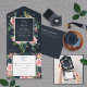 Elements: lush navy, blush and pink florals with greenery and orange accents. Classic serif fonts with elaborate script accents. Colors: navy blue, dusty blue, royal blue, pink, blush, green, orange, yellow, white. Themes: modern, traditional, vintage, classic, garden, botanical, winter, dark, autumn. Collection: Romantic Navy Blue Blush Pink Floral Wedding Collection Product Type: Program