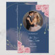 Create an unforgettable first impression with this elegant navy blue wedding Program, featuring delicate blush pink roses and a dreamy floral watercolor design. The circular gold-bordered photo frame beautifully highlights the couple, adding a personal touch to the invitation. The refined mix of calligraphy and serif fonts enhances the classic yet romantic aesthetic, making it perfect for modern, elegant, and timeless weddings. Ideal for couples looking for a sophisticated Program with a soft and charming floral touch.