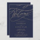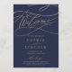 This romantic navy calligraphy flat wedding program is perfect for a simple wedding. The modern classic design features fancy swirls and whimsical flourishes with gorgeous elegant hand lettered faux champagne gold foil typography. Include the name of the bride and groom, the wedding date and location, thank you message, order of service, and bridal party.