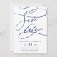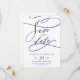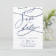 This romantic navy calligraphy flourish save the date card is perfect for a simple wedding. The modern classic design features fancy swirls and whimsical flourishes with gorgeous elegant hand lettered typography.