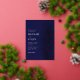 Elements: real rose gold foil, classic serif fonts, stardust design. Colors: navy blue, rose gold, white. Themes: romantic, night ceremony, modern, whimsical, luxury, glam, stars, astronomy, elegant, sophisticated. Collection: Romantic Navy Rose Gold Stardust Collection Product Type: Classic Invitation - Vertical