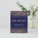 Elements: real rose gold foil, classic serif fonts, stardust design. Colors: navy blue, rose gold, white. Themes: romantic, night ceremony, modern, whimsical, luxury, glam, stars, astronomy, elegant, sophisticated. Collection: Romantic Navy Rose Gold Stardust Collection Product Type: Save the Date