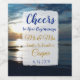Romantic Ocean Sunset Personalized Wedding sparkling wine or Wine Bottle labels. The text says, "Cheers" along with the bride and grooms Mr and Mrs names and wedding date.