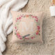Romantic Oleander Bird Pink Floral Monogram Throw Pillow