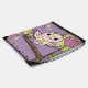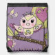 Romantic Owl drawstring bag, a pretty owl bag for girls who love the color lavender and love owls and nature! Features a cute owl of pink and light green with heart and leaf decorations on a branch from a tree with heart shape, a flower, and butterfly with a pretty lavender sky background.