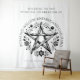 A wood pentacle, entwined with vibrant florals, is at the heart of this wedding welcome backdrop, symbolizing the elements, masculine and feminine, and the eternal cycle of life. Join us for a celebration of love and unity as Rosamund and Roland are married. The bride and grooms names curve around the wood star floral pentacle for an elegant effect with a classic antique typeface.