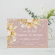 Unique and romantic boho pampas grass and dusty pink/peach flowers against a dusty rose pink background highlight this floral Save the Date. Lettering in a terracotta shade with elements of script calligraphy and glyphs. A lovely design choice to set the tone for your wedding celebration. For any design questions or additional customization and / or matching items, just send an email to charmdesignstudio@rcn.com and we'll be delighted to assist. View the collection link on this page to see all of the matching items in this beautiful design.