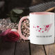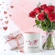 This cute couple mug features a design of a pink paper airplane with a contrail of floating hearts that say "forever", romantically floating in the air. Underneath sits the text "you’re my forever". A heartfelt present for couples who believe in lasting love, perfect for anniversaries, Valentine’s Day, or everyday moments together.