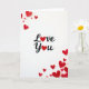 This greeting card features the words “Love You” placed right in the center on a white background. The letters are written in a loose, handwritten look in black, easy to read and full of warmth. The two “o” letters are replaced with bright red hearts, so the message feels extra loving without adding more words ❤️. Around the edges, especially near the top-left and bottom-right corners, there are several small red hearts that look like paper cutouts. Each heart is a slightly different size, and faint shadows make them look gently raised from the page. The simple layout keeps your focus on the message and makes it feel honest and direct. It’s a sweet choice for a partner, close friend, or anyone you want to remind that they matter 🥰. Hope it helps you share your Valentine’s Day sentiments.