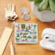 The key chain is made of metal and really sturdy. The flower design is really cheerful. The logo and colors are clear and crisp!