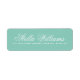 Elegant return address labels with your name in an elegant calligraphy script font and the address below. White text on a pastel green background.
