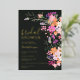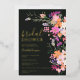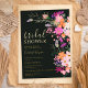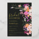 Romantic pastel wild flowers spring summer bridal shower with real gold foil and pretty wild country flowers in pink, peach, purple, lavender, green leaves and more, with a brushed script typography on an elegant editable dark green black background.