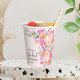 Romantic pastel wild flowers spring summer bridal shower paper cup with pretty wild country flowers in pink, peach, purple, lavender, green leaves and more, with a brushed script typography on an elegant editable soft pastel pink background.