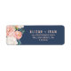 These romantic peony flowers blue wedding return address labels are perfect for an elegant wedding. The floral design features blush pink, peach and white cascading watercolor flowers on a navy blue background. Purchase the return address label size for your wedding invitations, and the address label size for your RSVP envelopes. These labels can be used for a wedding, bridal shower or any time you need a personal address label.