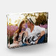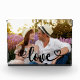 Create your own unique and stylish photo block. The photo template is set up ready for you to add your own picture which will automatically fill the entire front face. The hand lettered text overlay simply reads "love" in beautiful calligraphy with love hearts at each end. You can customize this frameless, versatile design with any photo. We chose a romantic photo as a lovely gift idea for couples, such as Valentines, engagements, new home or wedding anniversary.