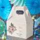Unique wedding favor box featuring romantic pink and champagne flowers and green leaves.