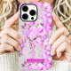 This phone case showcases a stunning pink and lavender floral arrangement on a soft gray background. Featuring a bold magenta name label for personalization, this design blends elegance and charm with a modern romantic feel. Ideal for those who love timeless floral patterns and custom accessories.
