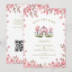 Romantic Pink Barn in Rustic Landscape and Cute Floral Frame Wedding Invitations Cards.