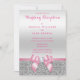 Romantic Pink Bow Silver Glitter Wedding Reception Invitation