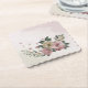 Unique wedding paper coaster featuring romantic pink and champagne flowers and green leaves.