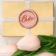 This elegant wedding wax seal features the word "love" in a refined cursive script, set against a soft blush background. The design uses subtle shades of pink to create a romantic and delicate aesthetic, perfect for adding a touch of sophistication to your special day. The embossed texture gives the letters a three-dimensional effect, enhancing their charm and making them stand out beautifully. Ideal for sealing invitations or gifts, this seal captures the warmth and affection of love with its simple yet impactful style.