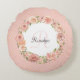 Romantic Pink Dotted Rose Floral Monogrammed Name Round Pillow