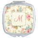 Romantic Pink English Roses on Yellow w/Monogram Compact Mirror