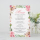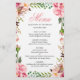 Romantic Pink Floral Border Wedding Menu Card