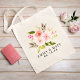 Romantic Pink Floral Bouquet Couple Names Tote Bag