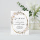 Romantic Pink Floral Elegant Foliage Gold Oval Frame Save the Date Postcard... Our luxe floral Save the Date postcard features beautiful blush pink blossoms and elegant leafy foliage curved around a faux gold metallic oval frame creating a dramatic border for the invitation text within. The back of the card contains your return address, wedding website information, and a QR code graphic template you can replace with your own (or delete). All example text (except for the Save the Date text graphic) on both sides of the card can be easily revised with your own details on the personalization template.
