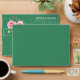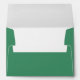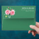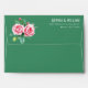 This elegant wedding envelope features a classic design with two large pink roses and green foliage on the left side, creating a romantic and natural motif. The right side showcases clean, centered white text in a modern sans-serif font, providing space for customizable names and addresses. Set against a deep green background, the color palette of soft pinks and vibrant greens enhances the sophisticated and timeless aesthetic. Perfect for formal occasions, this design exudes grace and refinement, making it an ideal choice for celebrating love and commitment.