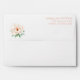 This wedding envelope features a minimalist design with a soft pink floral bouquet of peonies, accompanied by elegant green leaves. The layout is clean and balanced, with the text in a sophisticated serif font arranged vertically to the right of the illustration. The muted gold color adds a touch of luxury against the white background, creating an understated yet romantic feel perfect for special occasions. Ideal for weddings, this envelope combines classic style with delicate charm, making it a beautiful addition to any celebration.