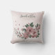 Unique beautiful throw pillow featuring romantic pink flowers and green leaves.