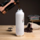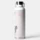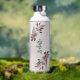 Unique water bottle featuring romantic pink flowers and some beautiful green leaves.