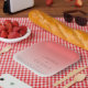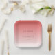 This wedding plate features a minimalist design with a gradient background transitioning from coral pink to soft peach, creating a warm and romantic atmosphere. The layout is clean and balanced, with centered text in a modern sans-serif font that adds elegance without clutter. Perfect for weddings or intimate celebrations, the design emphasizes simplicity and personalization, making it an ideal choice for those who appreciate understated yet meaningful aesthetics.