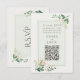 Romantic Pink green Floral Wedding RSVP QR Code Enclosure Card