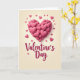 This Valentine's Day card shows a large heart shape made from many small, puffy pink hearts clustered together. Each little heart has gentle shading, with lighter highlights on top and deeper rosy tones underneath, so they look soft and almost touchable. Around the main heart, a few single hearts float across a creamy, pale background, giving the whole scene a calm, dreamy feel. The lighting is soft and even, which makes the hearts look rounded and cozy without any harsh shadows. Near the bottom of the card, the words “Valentine’s Day” appear in a flowing cursive-style letter form in deep fuchsia. The text sits centered under the heart and stands out nicely against the lighter colors above it. It feels meaningful to give because the many small hearts coming together suggest steady care, affection, and closeness 🥰❤️. Hope it helps you share sweet Valentine’s Day sentiments with someone you care about.