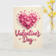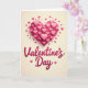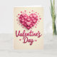 This Valentine's Day card shows a large heart at the top made up of many small, puffy hearts clustered together. The hearts range from pale blush pink to deep fuchsia, and they look slightly raised, almost like shiny enamel. A few tiny hearts float outward around the main shape, giving the front a light, airy feel against a creamy ivory background. Near the bottom, the words “Valentine’s Day” appear in a flowing, cursive-style lettering in deep magenta. The text sits centered under the heart and has a subtle lifted look that matches the raised hearts above. The overall picture feels sweet and caring, like a gentle way to say “I’m thinking of you” without needing a lot of extra words 🥰. It’s a meaningful card to give to a partner or a close friend because the layered hearts and soft colors quietly show affection and closeness ❤️, and it ends up being an easy way to share Valentine’s Day sentiments.