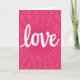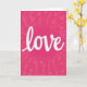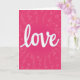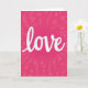 This greeting card features the word “love” placed right at the center in smooth, flowing lettering that immediately draws your eye. The letters are soft white with a gentle glow and a thin light-blue outline that helps them stand out. The background is a deep magenta pink that feels warm and romantic. Lighter pink swirls, leaf shapes, and small flower-like details are spread across the background, adding texture and interest. These details stay subtle, so the focus remains on the word in the middle. The overall look feels caring and hopeful, making this card a lovely choice for Valentine’s Day, an anniversary, or a simple note to remind someone how much they mean to you ❤️