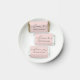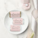 A sweet and feminine miniature wedding favor featuring "Love" in flowing calligraphy script with a delicate heart flourish and the couple's names styled as a personalized monogram element. Soft pink tones create a warm, romantic backdrop for this charming design. Personalize the names for a lovely reception favor. All text is fully editable.