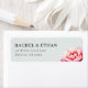 These return address labels feature a minimalist, modern design with a soft pastel color palette of pinks and yellows. The layout includes elegant serif typography for a timeless look, paired with a detailed illustration of a pink peony flower that adds a touch of nature and romance. Perfect for weddings or special events, the clean composition and gentle hues create an inviting and sophisticated aesthetic.