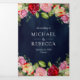 Romantic Pink Red Roses QR Code Navy Blue Wedding Tri-Fold Invitation
