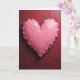 This design shows a large heart in the middle that looks like it’s made of rough stone, with soft pink color across its surface. The heart has small cracks and uneven ridges, especially around the edges where it looks chipped and layered. Behind it is a deep red background with a worn, painted texture, and a darker vertical line runs down near the center. Light falls across the heart from one side, making gentle highlights and shadows that help it stand out. There isn’t any printed text on the card, so the heart and the background do all the talking. The overall mood feels like love that’s real and lasting, even with a few rough spots 💕❤️. Share it to let someone know you care and to spread a little extra love for Valentine’s Day 😘.