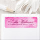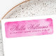 Elegant return address labels with your name in an elegant calligraphy script font and the address below on a pink watercolor background.