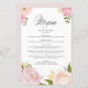 Romantic Pink Watercolor Flowers Wedding Menu Card